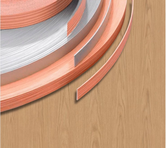 Cantell d'ABS sense cola per complementar el tauler de melamina que tenim disponible en estoc permanent. Disseny copiat de la melamina original.