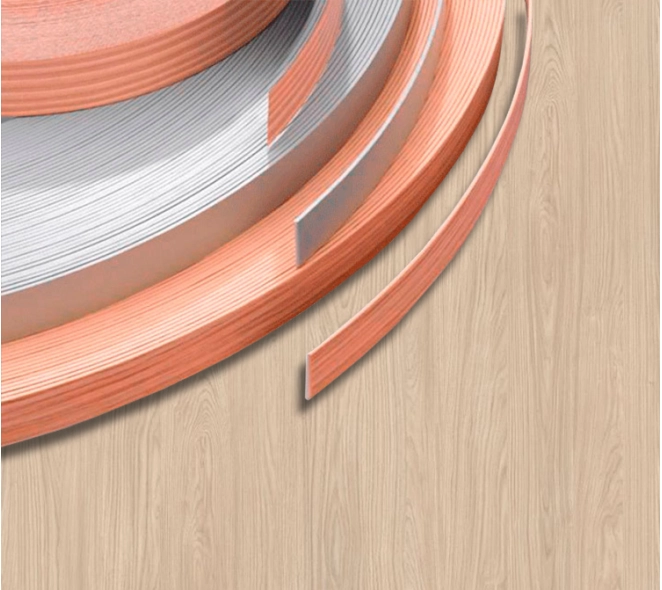 Cantell d'ABS sense cola per complementar el tauler de melamina que tenim disponible en estoc permanent. Disseny copiat de la melamina original.