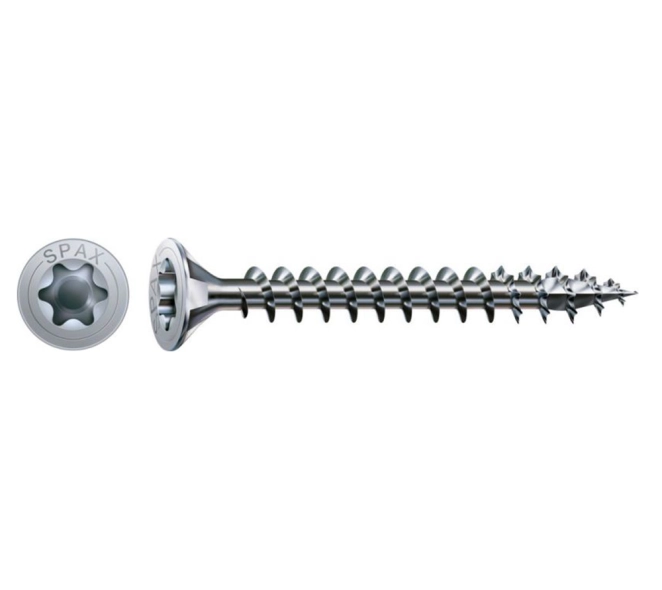 El cargol universal Spax amb cap pla i accionament Torx T-STAR plus és una solució ràpida i fiable per unir fusta i materials compostos. D’acer amb recobriment WIROX, ofereix protecció contra la corrosió sense crom (VI) i una llarga durabilitat; la punta 4CUT minimitza l’estellat i permet treballar sense pretrepanats, aportant acabats nets i resistents en tasques de fusteria i muntatge professional.