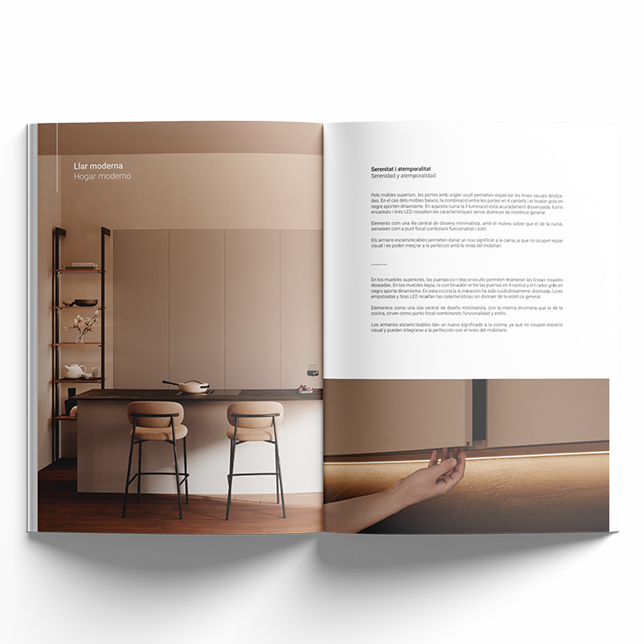 Benvinguts al nostre catàleg de cuines, un viatge visual mitjançant diferents estils que transformen el cor de la llar en un espai d’harmonia i funcionalitat. Cada proposta ha estat curosament seleccionada per inspirar i ajudar a imaginar tot nou projecte, descobrint com cada estil transmet una personalitat única i aconsegueix que la cuina es converteixi en un espai acollidor on crear, compartir i gaudir.