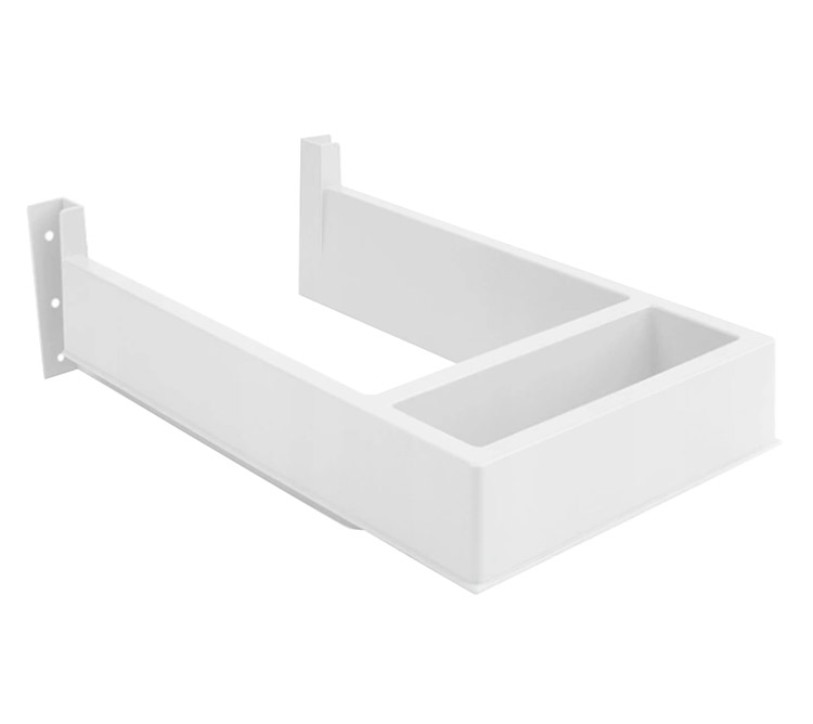 Salva sifó Emuca model Vertex rectangular per calaixos de bany situats sota el rentamans, d'acabat blanc. Disposa d'una gaveta per emmagatzemar diferents tipus d'objectes. Aquest salva sifó Emuca és una solució econòmica per aprofitar els espais dels mobles de bany.