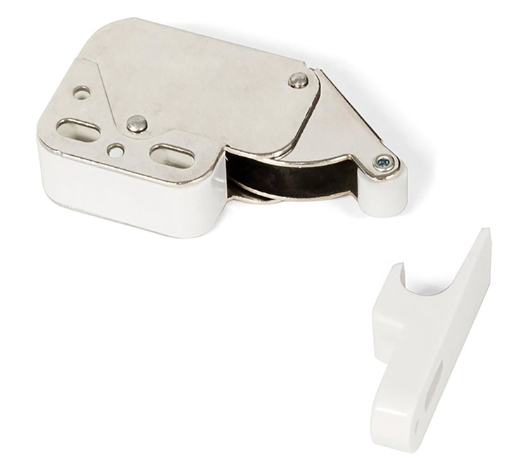 Cierre para puertas automático Emuca modelo Fast Latch con enganche mecánico para obtener el cierre de la puerta con el mueble.