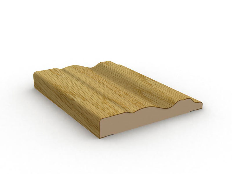 Jamba moldurada con base de MDF rechapada en chapa de madera natural de roble barnizado. Tapeta ideal para utilizar como complemento de montaje para rematar los marcos de las puertas y los armarios.