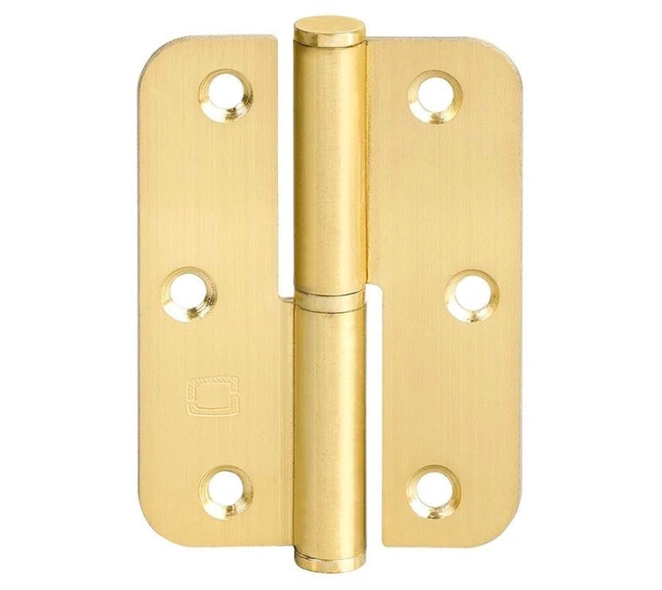 Pernio modelo 112 izquierda para puertas de paso residenciales y de uso público. Fabricado en acero inoxidable de acabado latón mate y soporta un peso máximo de 100 kilos con 4 bisagras.
