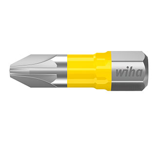 Punta destornillador magnética Wiha con vástago hexagonal de 1/4". Esta punta ofrece una vida útil 120 veces mayor gracias a la optimización para tornillos en forma de Y en comparación con los bits estándar.
