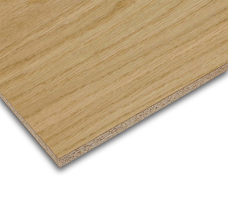 Tablero rechapado de chapa natural de Roble con las dos caras de primera calidad y base aglomerado de partículas.